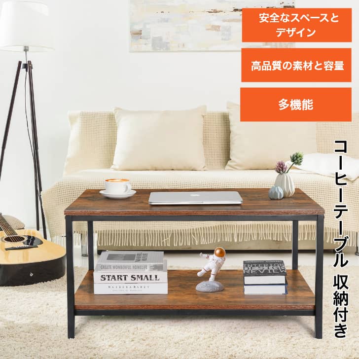 ■「送料無料」収納テーブル カフェーテーブル ティーテーブル ローテーブル コーヒーテーブル 収納付き 木目調 濃いブラウン色