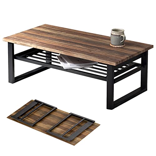 ■萩原 ローテーブル センターテーブル 折りたたみ式 棚付き テーブル 机 【木目調天板*スチール脚】 インダストリアル リビング ソファテ