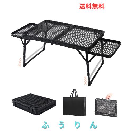 ■Along life キャンプ テーブル 折畳テーブル サイドテーブル付き メッシュテーブル 大きなスペース ローテーブル 二つ折りテーブル 耐熱