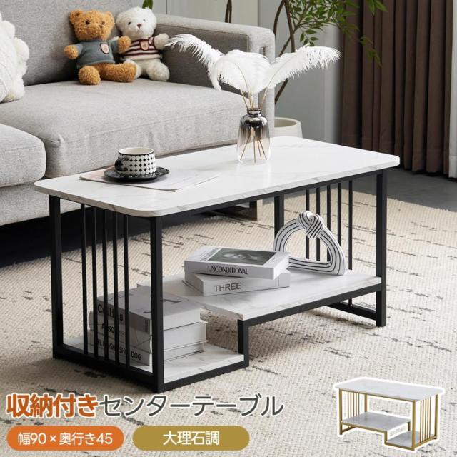 幅90cm 大理石調 センターテーブル 長方形 ローテーブル 収納付き 収納棚 コーヒーテーブル リビングテーブル コンパクト カフェテーブル 北欧風 おしゃれ