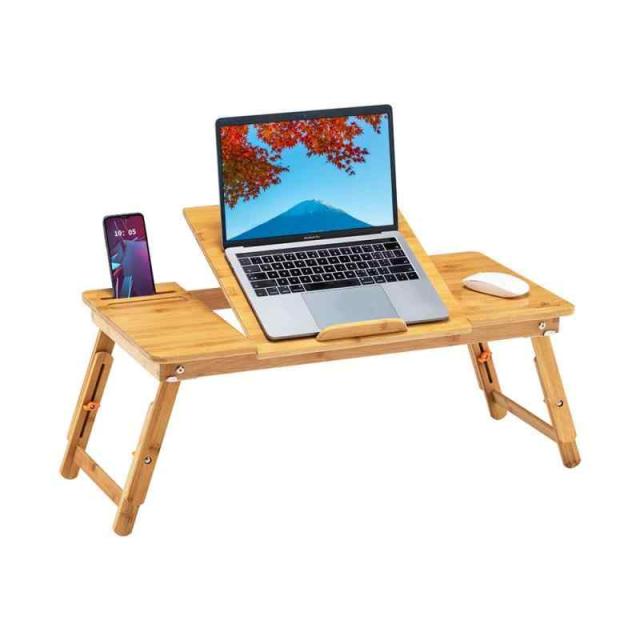 ■【送料無料】ノートパソコンデスク PCスタンド 傷付きにくい 竹製 ベッドテーブル ローテーブル 折りたたみ式 膝上テーブル 高さ調整可能