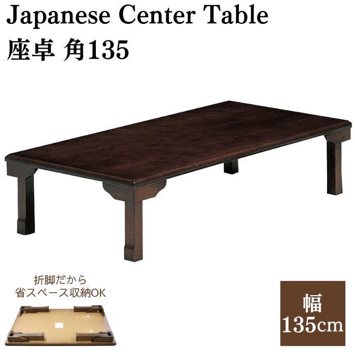 ■座卓 角135 折脚座卓 折りたたみテーブル 135cm ローテーブル 角型 長方形 K-135V 折り畳み センターテーブル テーブル 机 木製 天然木