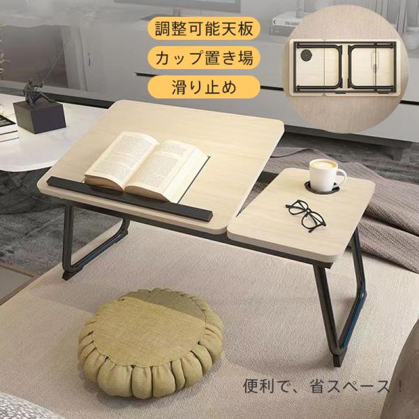 ■ローテーブル ローデスク 折りたたみ式 ベッドテーブル パソコンデスク パソコンテーブル ドリンクホルダー付き 4段階 角度調節可能 コン