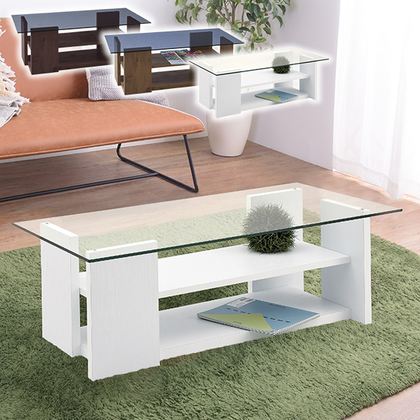 ■センターテーブル ガラス天板 ローテーブル リビングテーブル 幅100cm ホワイト 代引不可 北海道・沖縄県・離島部別途追加送料