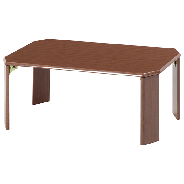 どんな場所でも使いやすい、木目調タイプのテーブルです。使用しない時は、脚を畳んで収納できます。天板は傷・汚れに強いメラミン加工。脚にはロック機能が付いているので、テーブルが倒れてしまう心配もありません。