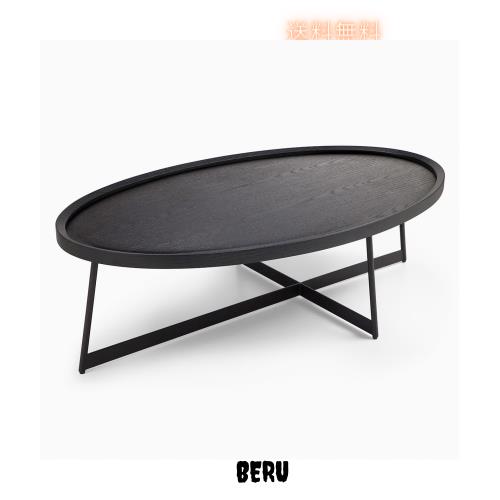 ◆商品名:モダン現代感 リビングテーブル、コーヒーテーブル 楕円形センターテーブル ローテーブル 幅120cm ブラック