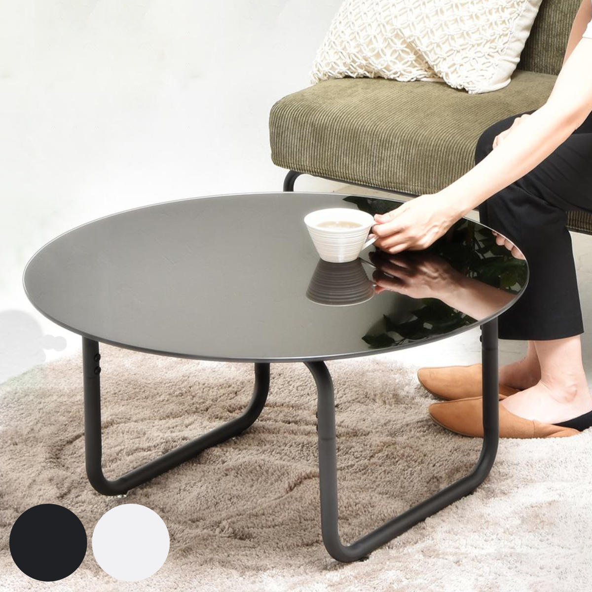 ■リビングテーブル 円型 直径75cm ガラス天板 ROND ( 丸 ラウンド ローテーブル センターテーブル テーブル 強化ガラス 簡単組立 シンプ