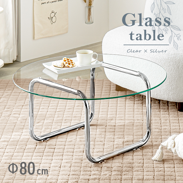 ■テーブル ローテーブル ガラス ガラステーブル 丸 コーヒーテーブル 幅80 リビング おしゃれ センターテーブル ガラス リビングテーブル