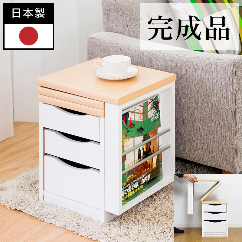 ■折りたたみ サイドテーブル ワンタッチ 天板折りたたみ 日本製 コンパクト 完成品 ワンルーム 新生活 ベッドサイド収納 ローテーブル リ