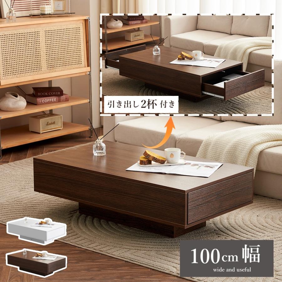 ■センターテーブル 収納付き ローテーブル テーブル 幅100cm 大容量 簡単開閉 引き出し付き パソコンテーブル