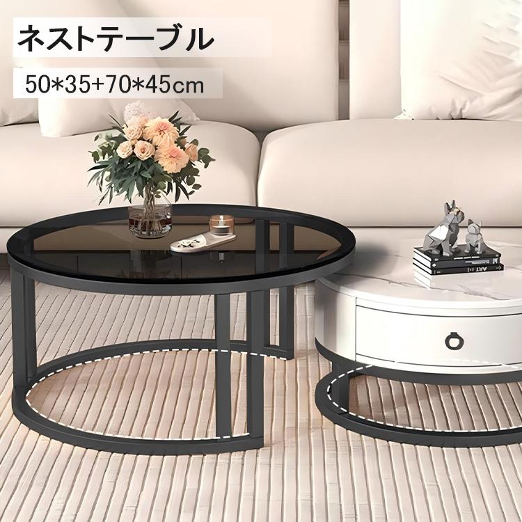 ■4つ組み合わせ ネストテーブル センターテーブル ローテーブル 入れ子 大理石調 強化ガラス 円形 丸型 ラウンド テーブル リビング