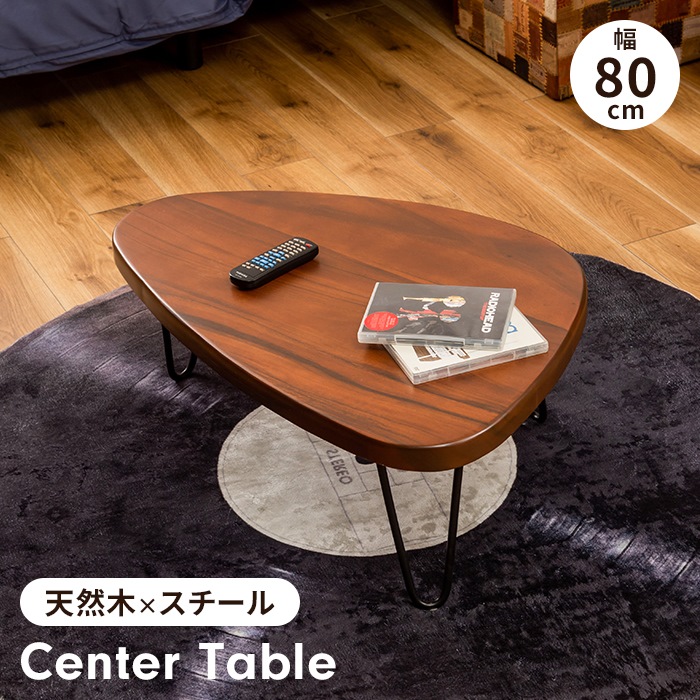 ■センターテーブル ローテーブル 幅80 三角形 ウッドテーブル 木製 天然木 スチール脚 ナチュラル おしゃれ シンプル かわいい
