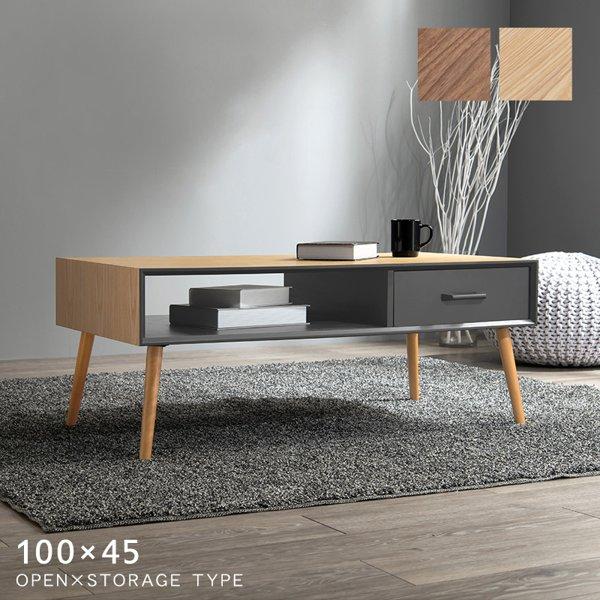 ■センターテーブル ローテーブル 収納付き 幅100cm 棚 引き出し 引出し 木製 天然木 おしゃれ 北欧 モダン リビング 男 ひとりぐらし 一