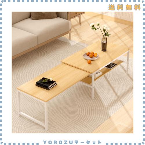 ■LunarLight ローテーブル 幅伸縮80.5-142.7奥行き45高さ35cm 無段階調整・伸縮ローテーブル センターテーブル リビング 机 座卓 コンパク