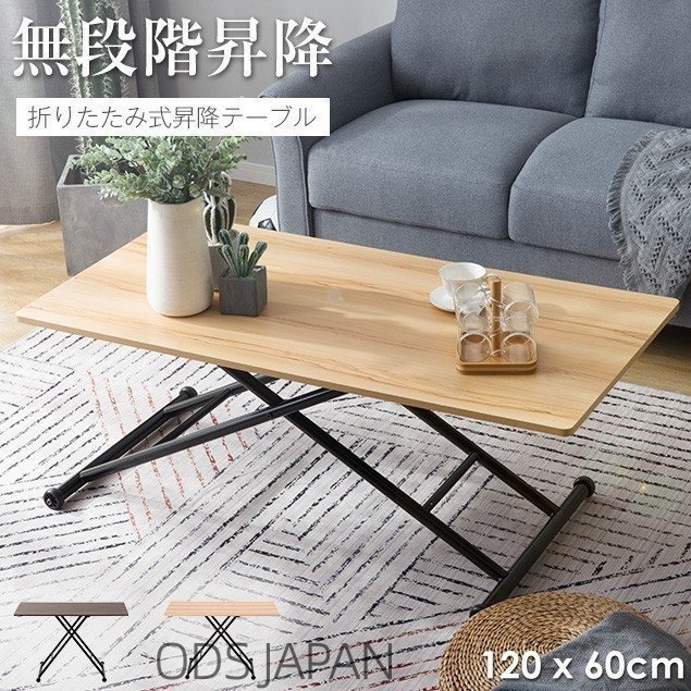 ODS昇降式テーブル テーブル ガス圧昇降式テーブル 昇降テーブル ローテーブル キャスター付き 折りたたみ ガス圧 昇降式 無段階 高さ調節