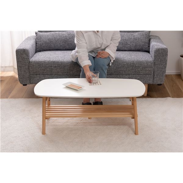 ■折りたたみテーブル ローテーブル 約幅90×奥行45×高さ35cm ホワイト 天然木 パイン 棚付 フォールディングテーブル 完成品