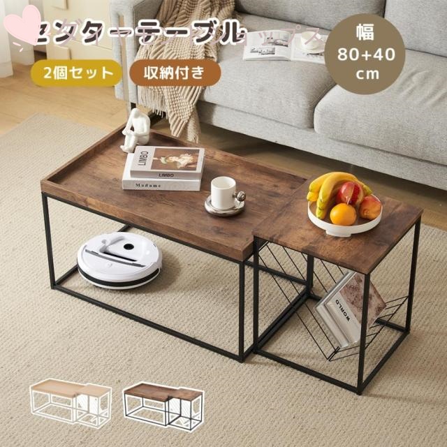 ■センターテーブル 2点セット ローテーブル 北欧風 収納付きリビングテーブル サイドテーブル 木目調 モダン コンパクト 組み立て簡単 耐