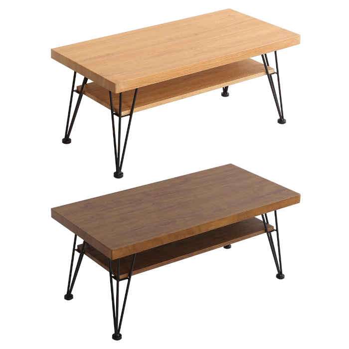 ■北海道・沖縄・離島配送不可 代引不可 センターテーブル ローテーブル W80×D39.5×H35cm 木目調×スチール 棚板付き ヴィンテージ風 イ