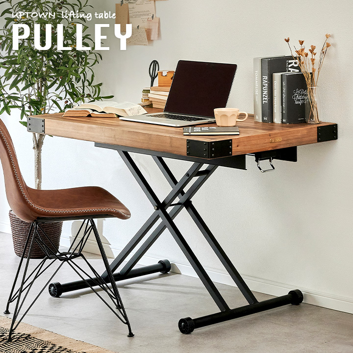■UPTOWN リフティングテーブル PULLEY(プーリー) 幅110cm テーブル 無段階 昇降テーブル ローテーブル ダイニングテーブル ワークデスク