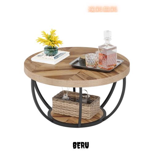 ■Tribesigns ローテーブル リビングテーブル 丸 サークルコーヒーテーブル 収納棚付き モダンおしゃれ 木製センターテーブル ソファサイド