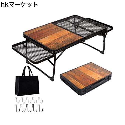 ■UPF キャンプ テーブル メッシュ サイドテーブル付き アウトドア テーブル 木目 軽量 折りたたみテーブル コンパクト ローテーブル 折り