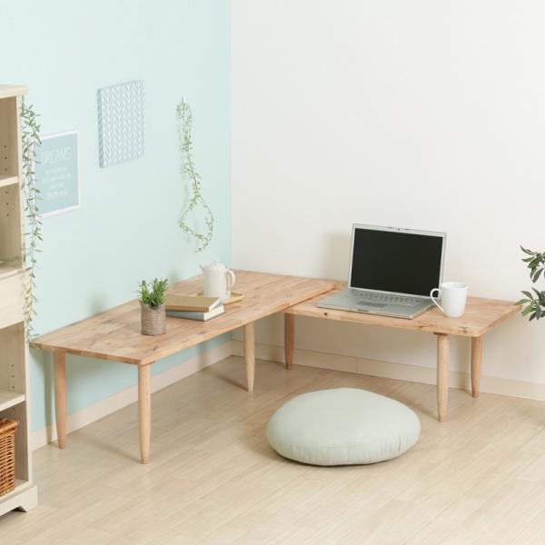 ■センターテーブル 幅120 長方形 伸長 ツイン L字 木製 天然木 シンプル ローテーブル 机 ロータイプ デスク 座卓 おしゃれ 北欧 ナチュラ