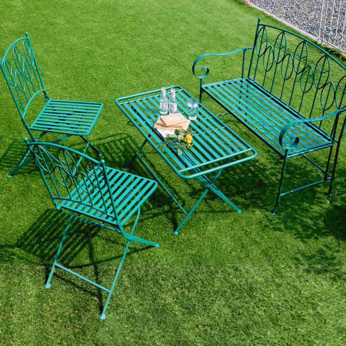 ■ローテーブル&ベンチセット アイアン製 Sunny Leaf サニーリーフ 4点セット ( テーブル ガーデンチェア ガーデン 庭 折りたたみ 机 椅