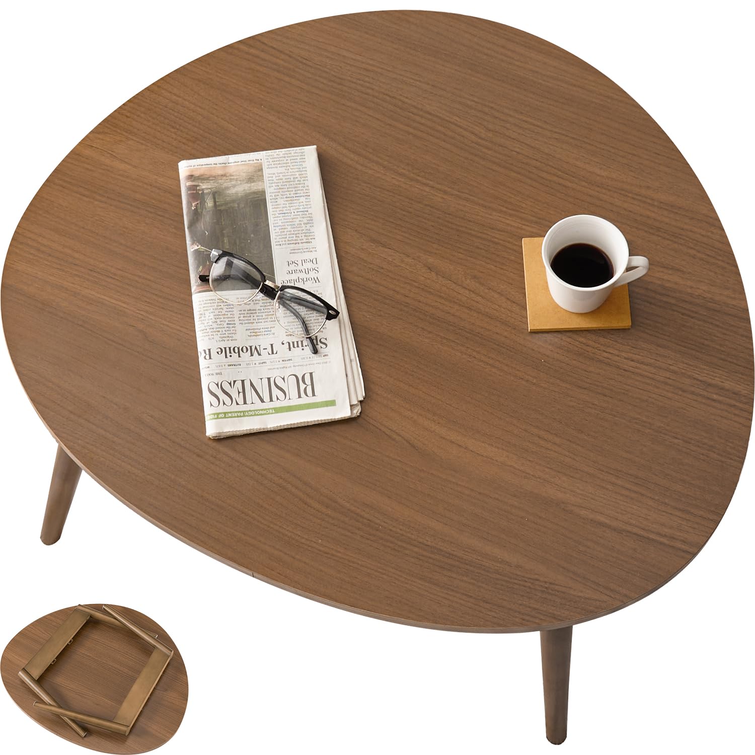 ◆商品名:萩原 ローテーブル テーブル 卵型 丸型 コンパクト 折りたたみ式 【 完成品 】韓国 インテリア 幅 75 奥行 65 高さ 35.5 ブラウン MT-638