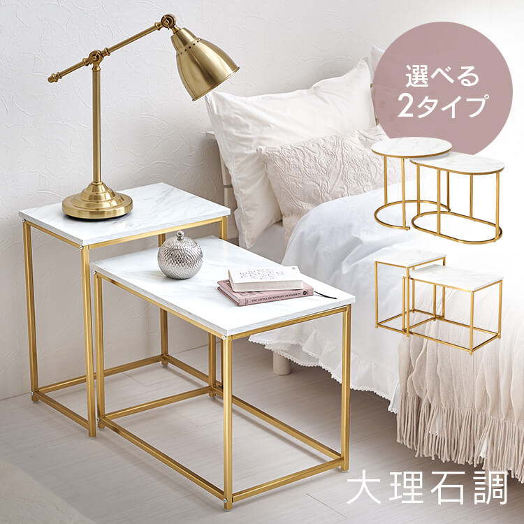 ■サイドテーブル おしゃれ ネストテーブル 丸型 四角型 白 大理石調 大小 2点セット センターテーブル ツインテーブル ミニテーブル ソフ