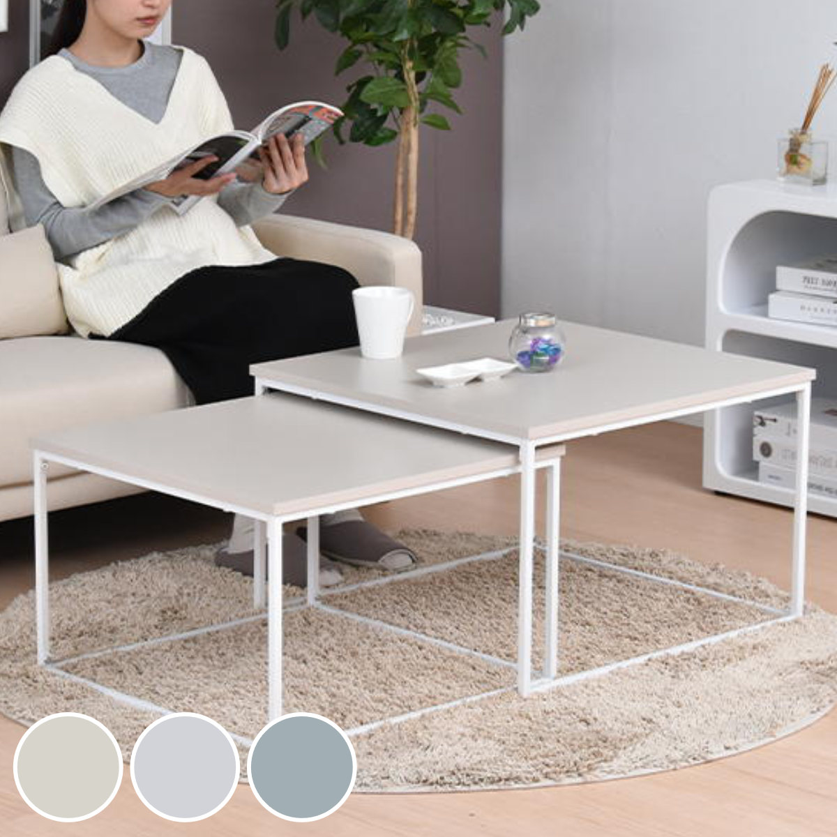 ■ネストテーブル コの字 コの字テーブル カフェテーブル センターテーブル ローテーブル パステルカラー 完成品 【ZERO1053042/aino】 ☆