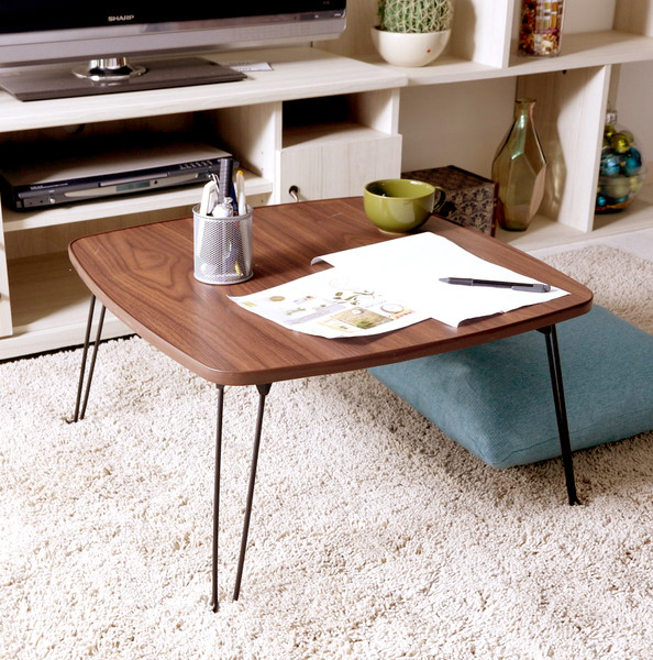 ■ローテーブル 完成品 センターテーブル 折りたたみ 折り畳み 折畳み 折れ脚 スチール脚 正方形 四角 角が丸い 角丸 木目 ウォールナット