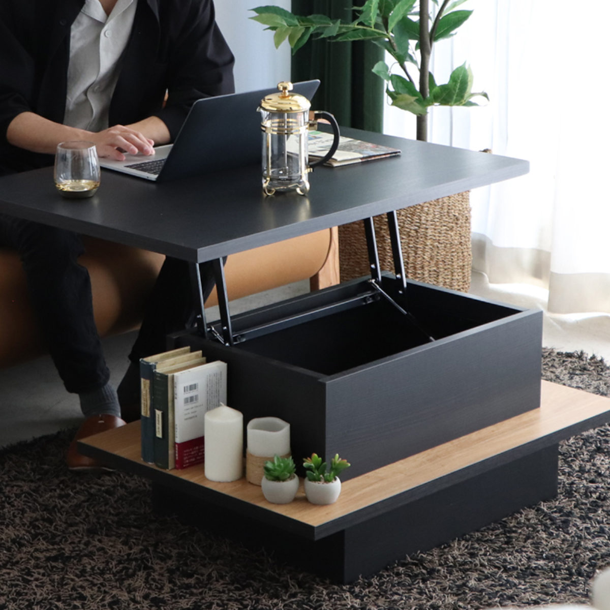 ■リフトアップテーブル 幅90cm FEEL 収納付き ローテーブル 昇降式 ( リビングテーブル センターテーブル テーブル 収納 日本製 高さ調節