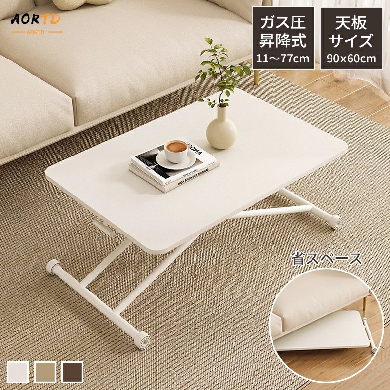 ■AORTD 昇降テーブル ガス圧 キャスター付き 小さめ ダイニング ダイニングテーブル 食卓テーブル おしゃれ センターテーブル ローテーブ