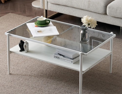 オーエスジェイ(OSJ) ローテーブル ガラステーブル センターテーブル 二段収納 強化ガラス コーヒーテーブル 高級 収納付き おしゃれリビングテーブル おしゃれ ダイニングテーブル