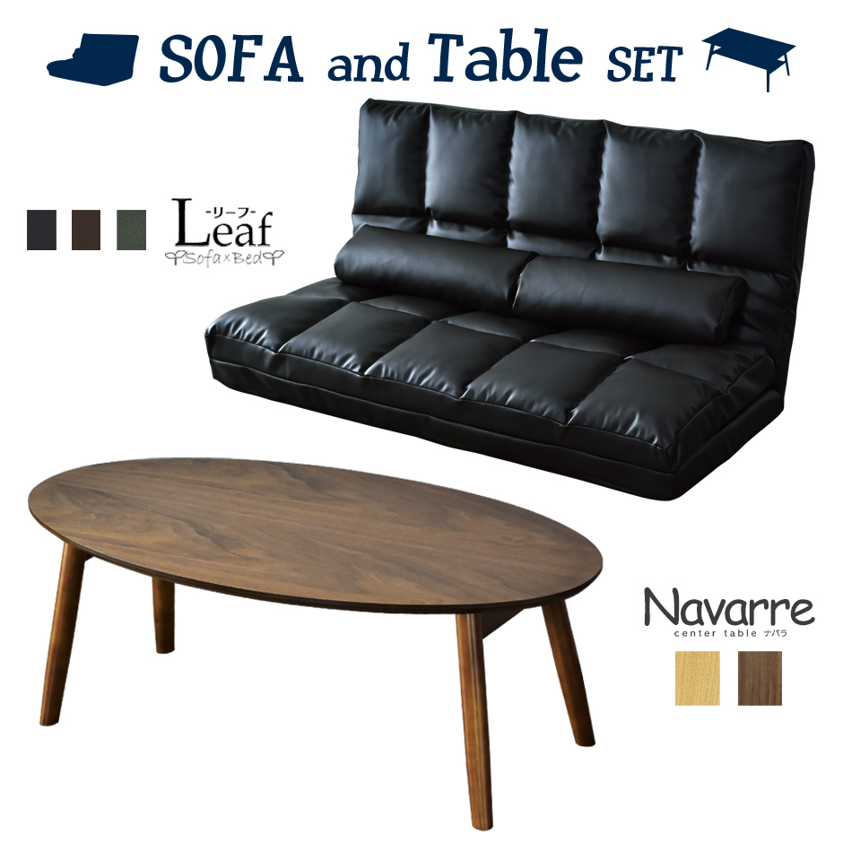 【配送につきまして】◆北海道・沖縄・離島は別途送料お見積りとなります。■商品名:リーフSD & ナバラ【Leaf & Navarre】■本体サイズ【リーフSD(ソファ・ソファベッド)】幅130×奥行73〜178×高さ10〜62(cm)【ナバラ(テーブル)】幅90×奥行45×高さ8(8〜32)cm※個体差により若干の差異あり■梱包サイズ【リーフSD(ソファ・ソファベッド)】約幅131×奥行き28.5×高さ65(cm)【ナバラ(テーブル)】約幅95×奥行50×高さ12(cm)■材質【リーフSD(ソファ・ソファベッド)】合成皮革ウレタンフォーム・ウレタンチップ・綿【ナバラ(テーブル)】MDF+ウォルナット突板(BR)MDF+アッシュ突板(NA)・ラバーウッド■本体重量【リーフSD(ソファ・ソファベッド)】約16kg【ナバラ(テーブル)】約5.5kg■耐荷重【リーフSD(ソファ・ソファベッド)】160kg【ナバラ(テーブル)】15kg■総重量(梱包材含む)【リーフSD(ソファ・ソファベッド)】約18kg【ナバラ(テーブル)】約7kg