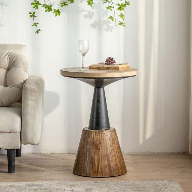 ■サイドテーブル 高さ53.5cm 木製 スチール 丸 ( コーヒーテーブル テーブル 机 ソファーテーブル ナイトテーブル 丸テーブル シンプル