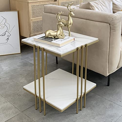 ■unho サイドテーブル ナイトテーブル 大理石天板×ゴールド脚 ベッドサイドテーブル ソファ横 コーヒーテーブル 棚付き 白 おしゃれ 幅45
