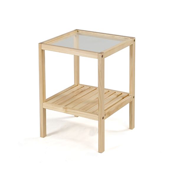 ■ガラス サイドテーブル エンドテーブル コーナーテーブル 小型 脇台 机 約幅幅35.5cm ナチュラル 木製 棚付き (置き台 置き場付き) ガラ