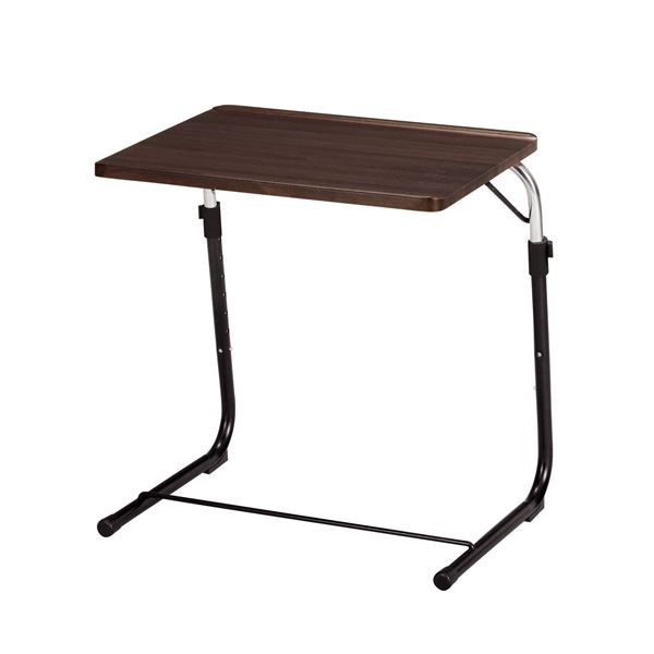 ■フォールディング サイドテーブル エンドテーブル コーナーテーブル 小型 脇台 机 【ブラウン】 幅535mm 金属 スチール フレーム 高さ調