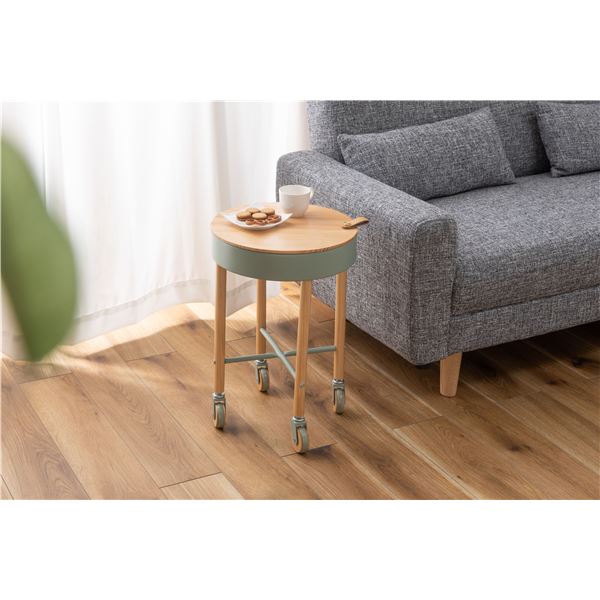 ■サイドテーブル エンドテーブル コーナーテーブル 小型 脇台 机 約幅35×奥行35×高さ51.5cm グリーン 金属 スチール キャスター付 移動