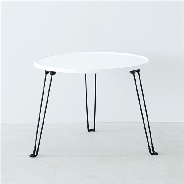 ■セカンドサイドテーブル エンドテーブル コーナーテーブル 小型 脇台 60(ホワイト/白)【直径60cm】 机 折りたたみ 折れ脚 軽量 フラワー