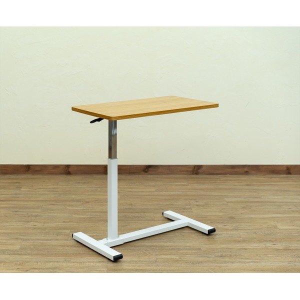 ■サイドテーブル エンドテーブル コーナーテーブル 小型 脇台 机 幅700mm ナチュラル 昇降式 金属 スチール キャスター付 移動可能 車輪付