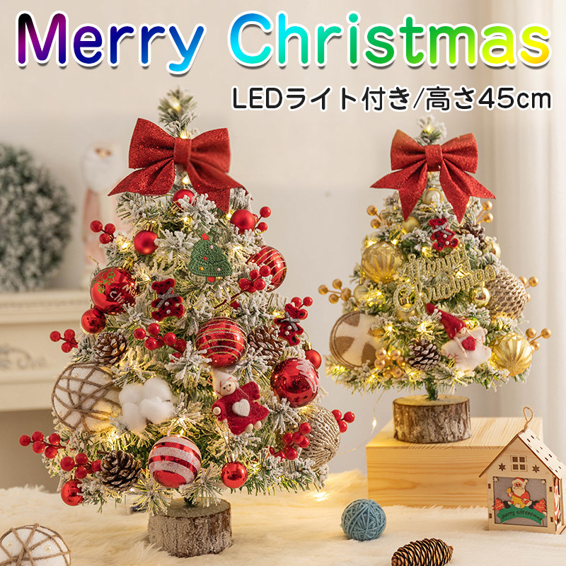■ミニクリスマスツリー 卓上 オーナメント LEDライト付き 雪化粧 クリスマスツリー飾り 高さ45cm クリスマスグッズ おしゃれ 飾り