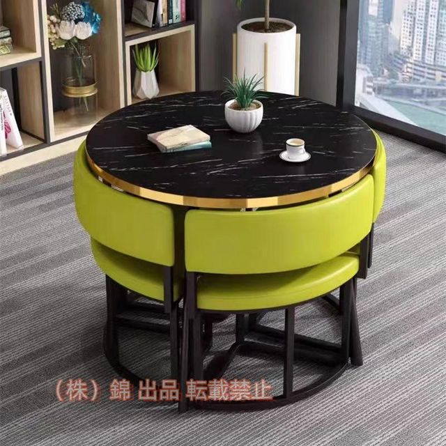 【製品仕様】表80X75CM(直径X高さ)包装:1表4椅子。椅子の色を選択できます。 【高品質の素材】デスクトップはE1グレードの環境保護板の卓上を採用し、卓上には、厚手の実用的な材料、厚い材料、環境保護や健康、防湿防錆あります。丸みを帯びたコーナーの設計は、衝突被害を軽減し、すべての回での家族の安全を守ります。座面には、快適で通気性、および耐摩耗性とタフで高品質の革で作られています。ワンピースの背もたれが快適で、風通しの良いです。これは、高密度のスポンジで満たし、優れた弾力性を持っています。 【高品質の厚みのある金属管】テーブルフレームと椅子の足が安定し、耐久性のある高品質の鉄の芸術、のものであり、それは負荷の下で錆に簡単です。高品質なハードウェアがデスクトップに接続され、しっかりと安定して頑丈に溶接されています。滑り止めフットパッドと椅子の足の親密なデザインは、傷から床を防ぎ、より安定して確保しています。 【様々なシーンに適し】などチェス室、図書室、事務室、スーパーマーケット、ラウンジ、ケーキショップ、衣料品店、喫茶店、コーヒーショップ、リビングルーム、ベッドルー