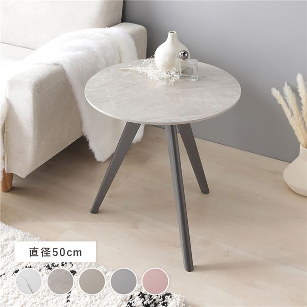 ■ラウンド サイドテーブル エンドテーブル コーナーテーブル 小型 脇台 机 約幅50cm ストーン 大理石調 天然木 木製 軽量 ナイトテーブル