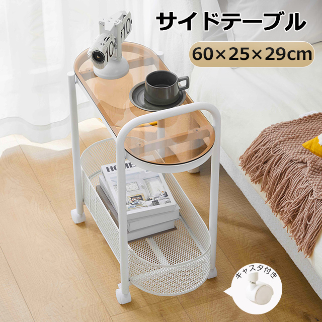 オープンスペースの収納棚で、寝室やリビングでの収納に便利です。コンパクトなデザインで、狭いスペースにもぴったりです。 【2段式】2段のテーブルにはフチがあるので、安定して物を置けます。自分の好きな位置に持ってくることで縦の空間をしっかり活用できます。 【ガラス製天板】スタイリッシュなガラス面と金属を組み合わせたデザインで、圧迫感を感じにくく、部屋を広く見せられるので、スッキリとした印象を演出できます。 【キャスター付き】キッチンからリビングヘ、リビングから寝室へ自由自在。 【実用性とおしやれ感を両立】リビング、寝室、オフィス、ソファやベッド横など…どんなスタイルのお部屋にも合わせやすい!