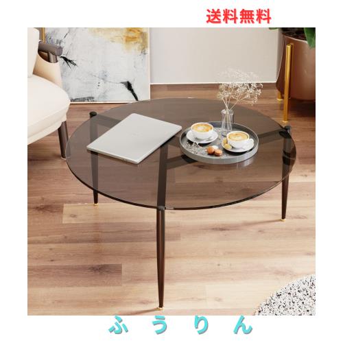 ■Artloge ローテーブル ガラス センターテーブル 丸 ガラステーブル 幅80? リビングテーブル 円形 おしゃれ 丸テーブル グレー