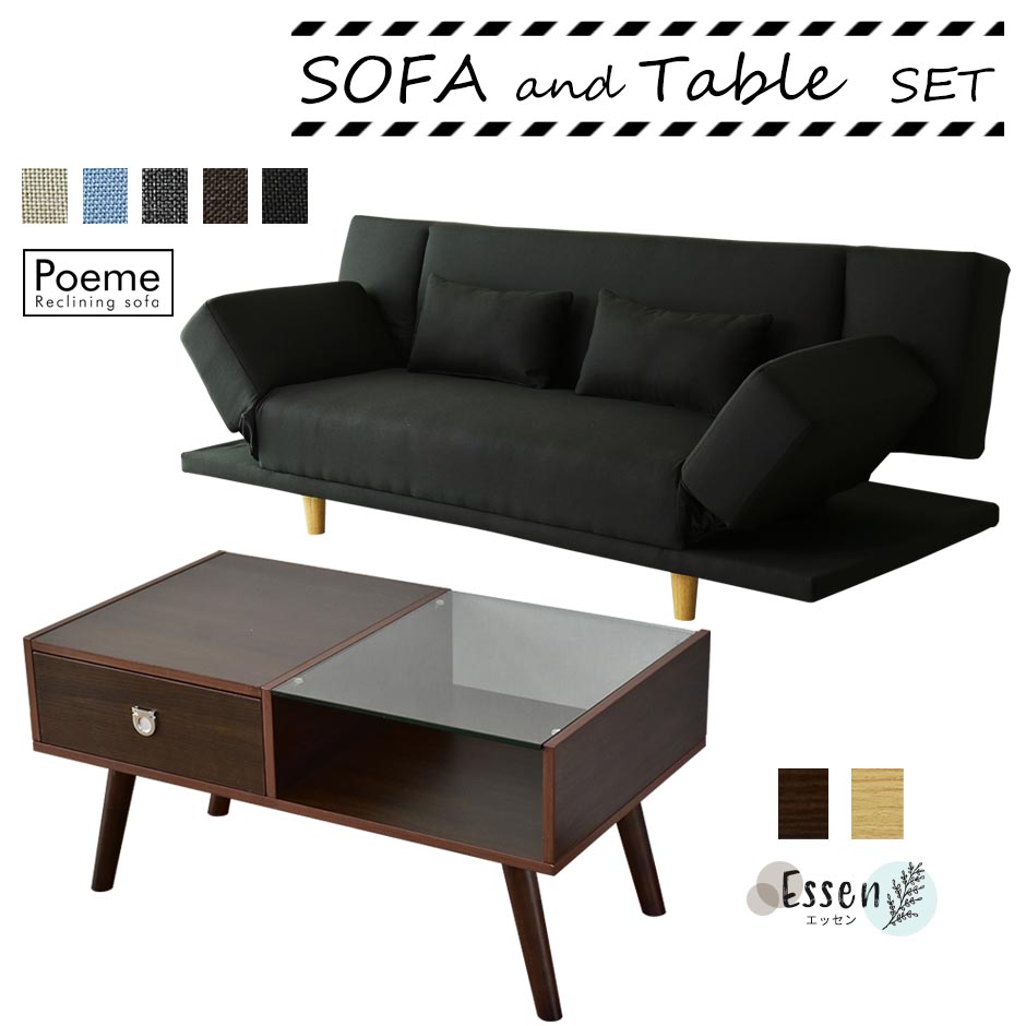 ■ソファセット ソファベッド ローテーブル リクライニングソファ 2人掛け 3人掛け クッション付き ガラステーブル リビングテーブル 収納