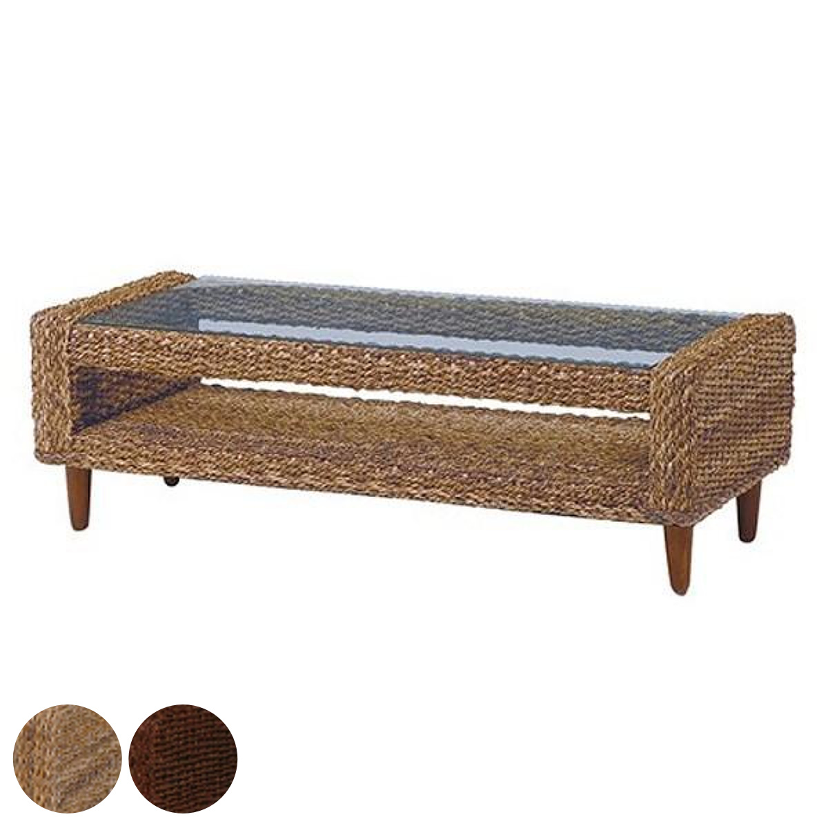 ■ローテーブル 幅120cm ガラス天板 アバカ素材 完成品 グランツ ( センターテーブル リビングテーブル 机 デスク ガラステーブル アバカ