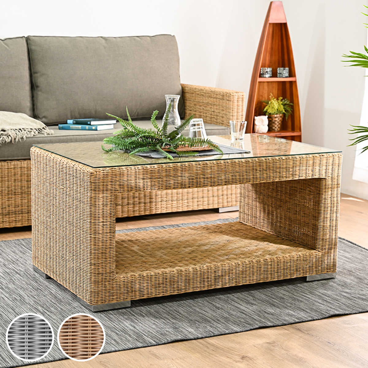 ■シンセティックラタン テーブル 幅110cm PEコード ガラス天板 Garden ( ガラステーブル 机 リビング カフェテーブル リビングテーブル